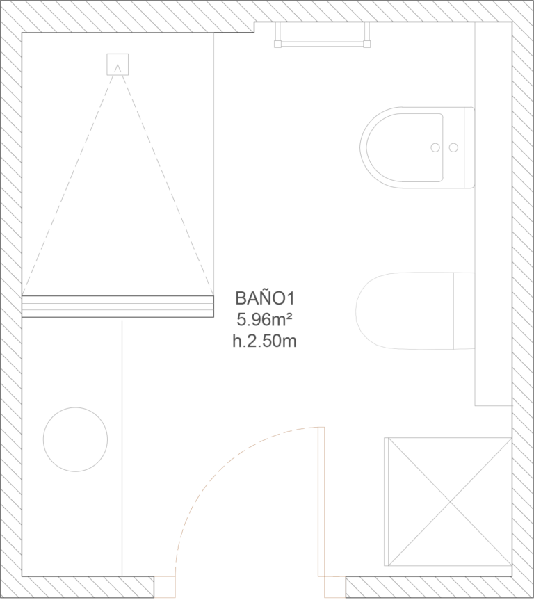 En la nueva propuesta de distribución se eliminó la bañera original para ampliar la superficie de la ducha, priorizando la accesibilidad y el confort de uso a medio y largo plazo. Este cambio implicó una reducción del área destinada al lavabo, pero permitió optimizar la circulación y mejorar la ergonomía general del espacio.