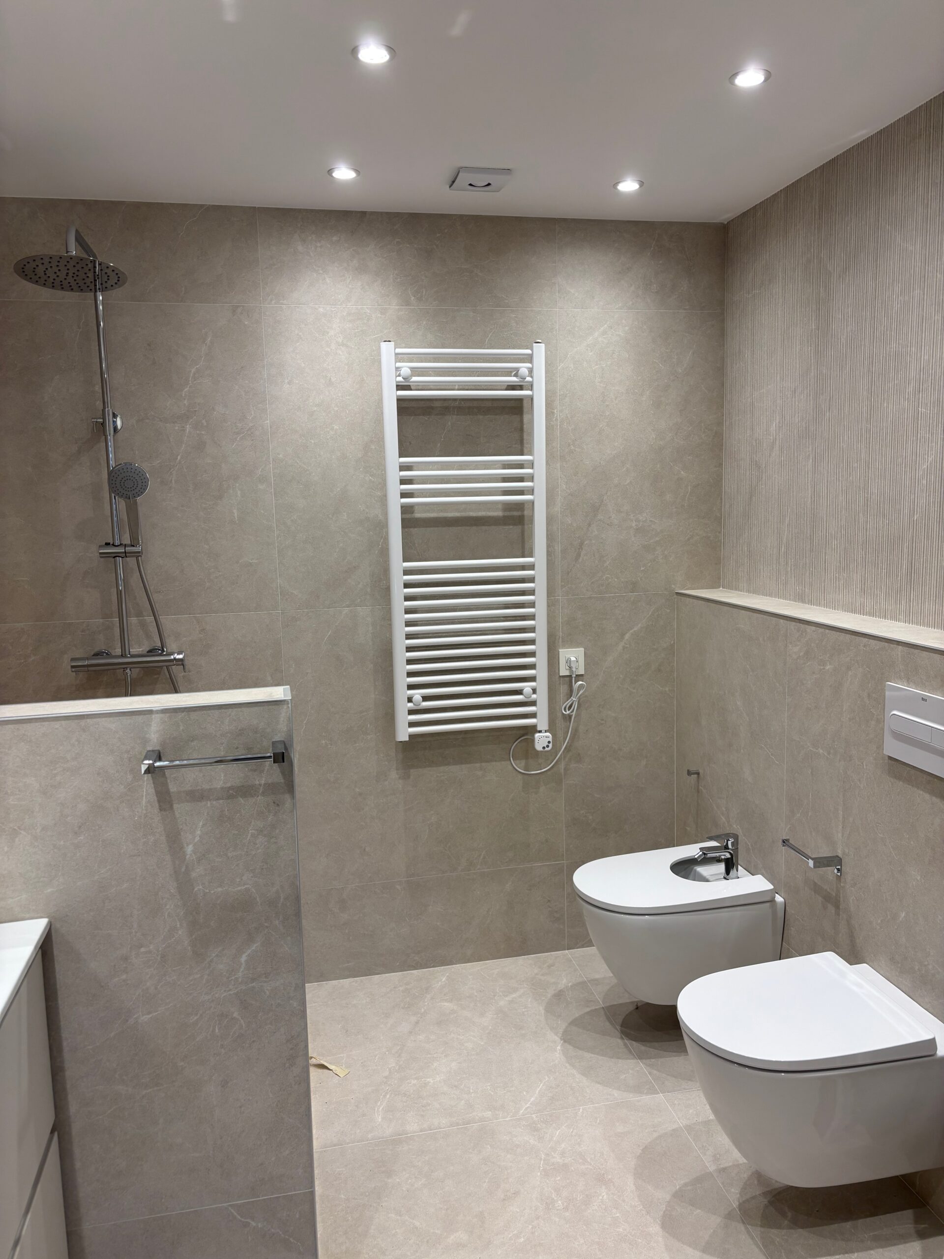 El resultado final es un baño funcional, luminoso y de líneas limpias, adaptado a las necesidades actuales de los usuarios sin renunciar a la estética y la calidad constructiva.