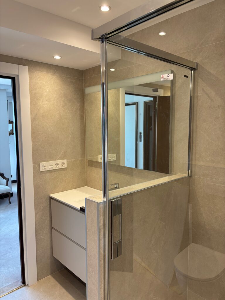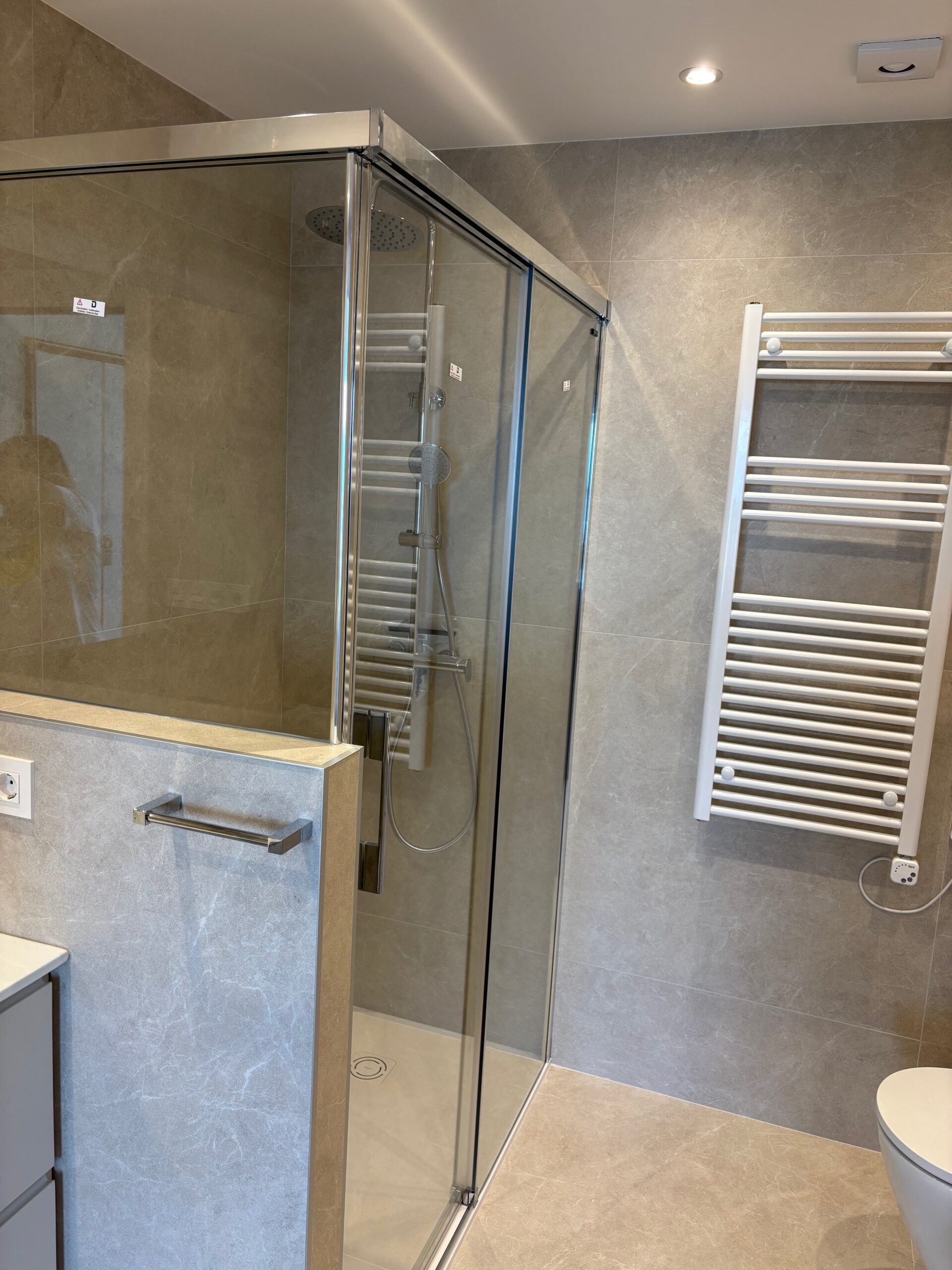 El proyecto consistió en la renovación integral del baño de la habitación principal, motivada por el deterioro de las instalaciones existentes y la necesidad de adecuar el espacio a las exigencias funcionales y estéticas actuales de los propietarios.
